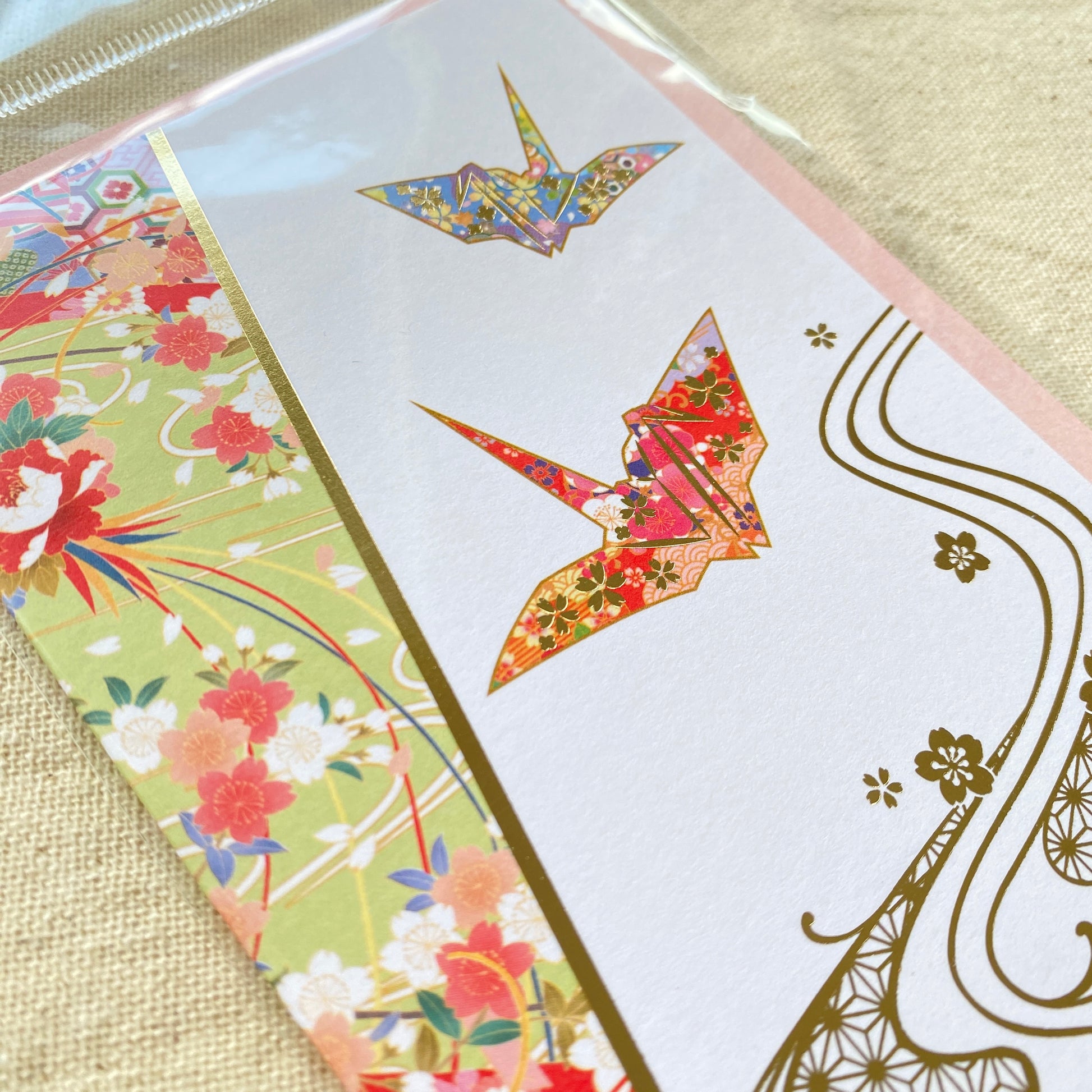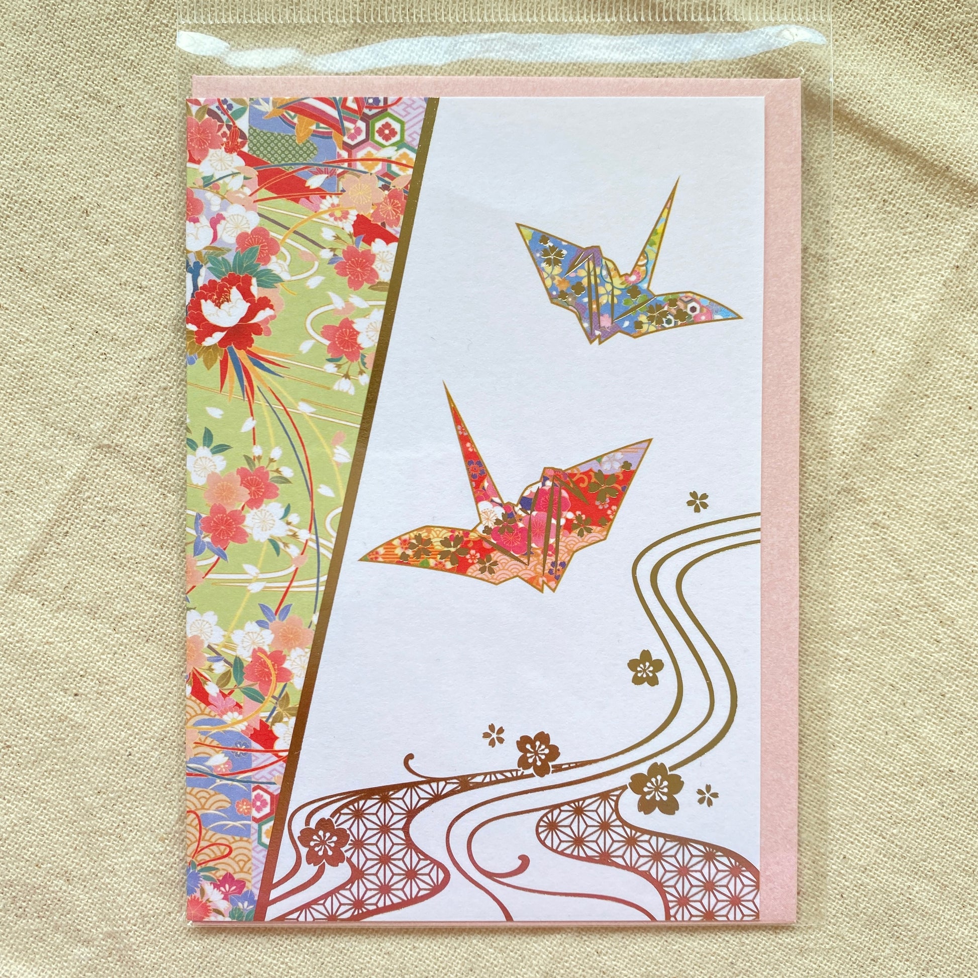Carte de vœux Grues en Papier et Eau Courante