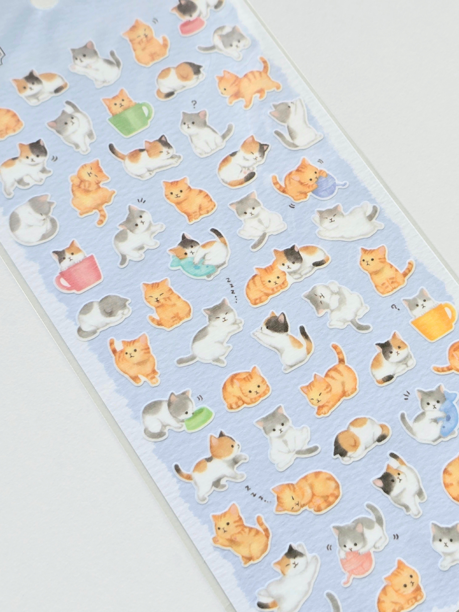 A sheet of playful cat stickers in different cute poses—great for decorating notebooks, planners, or letters.