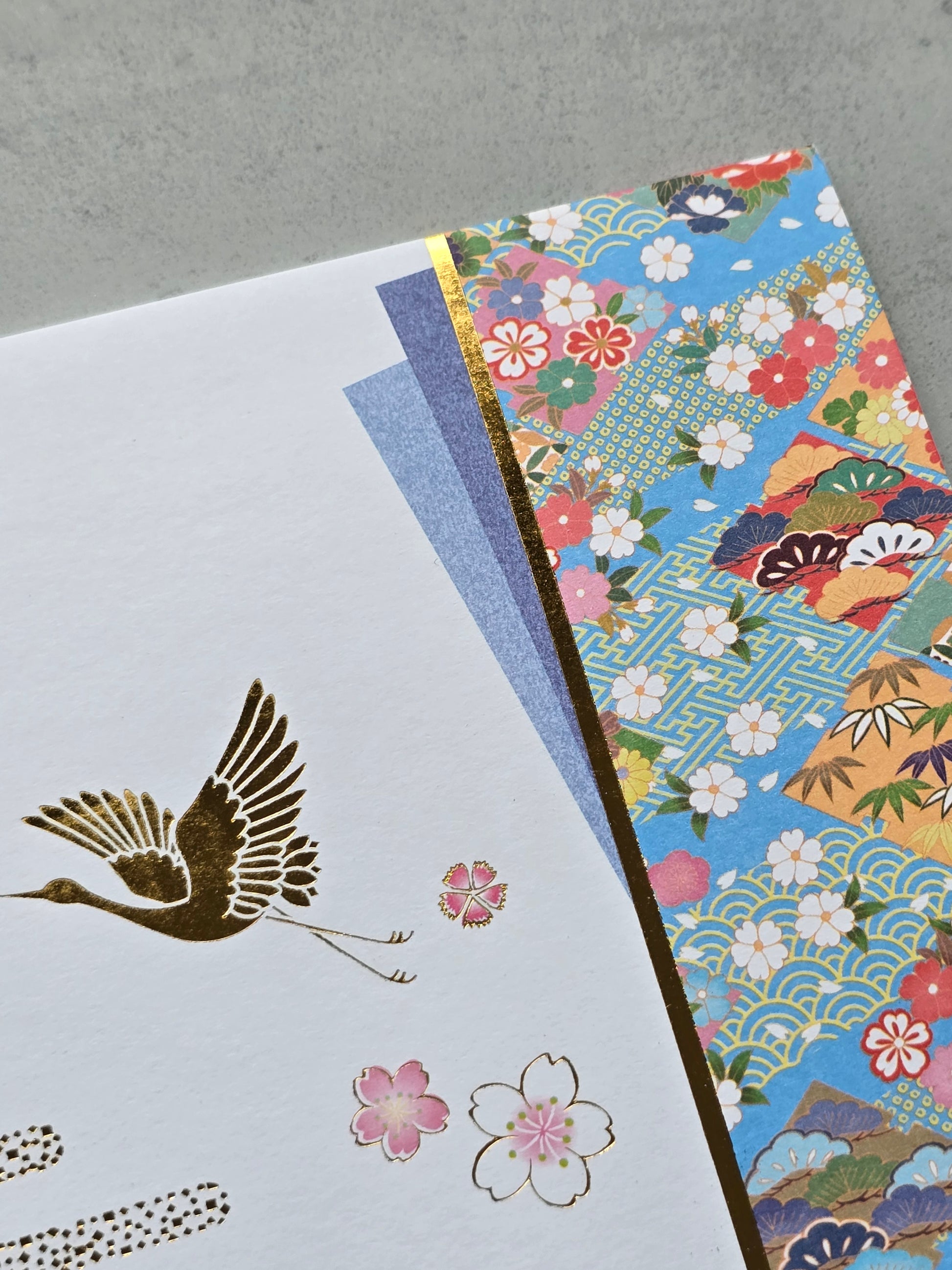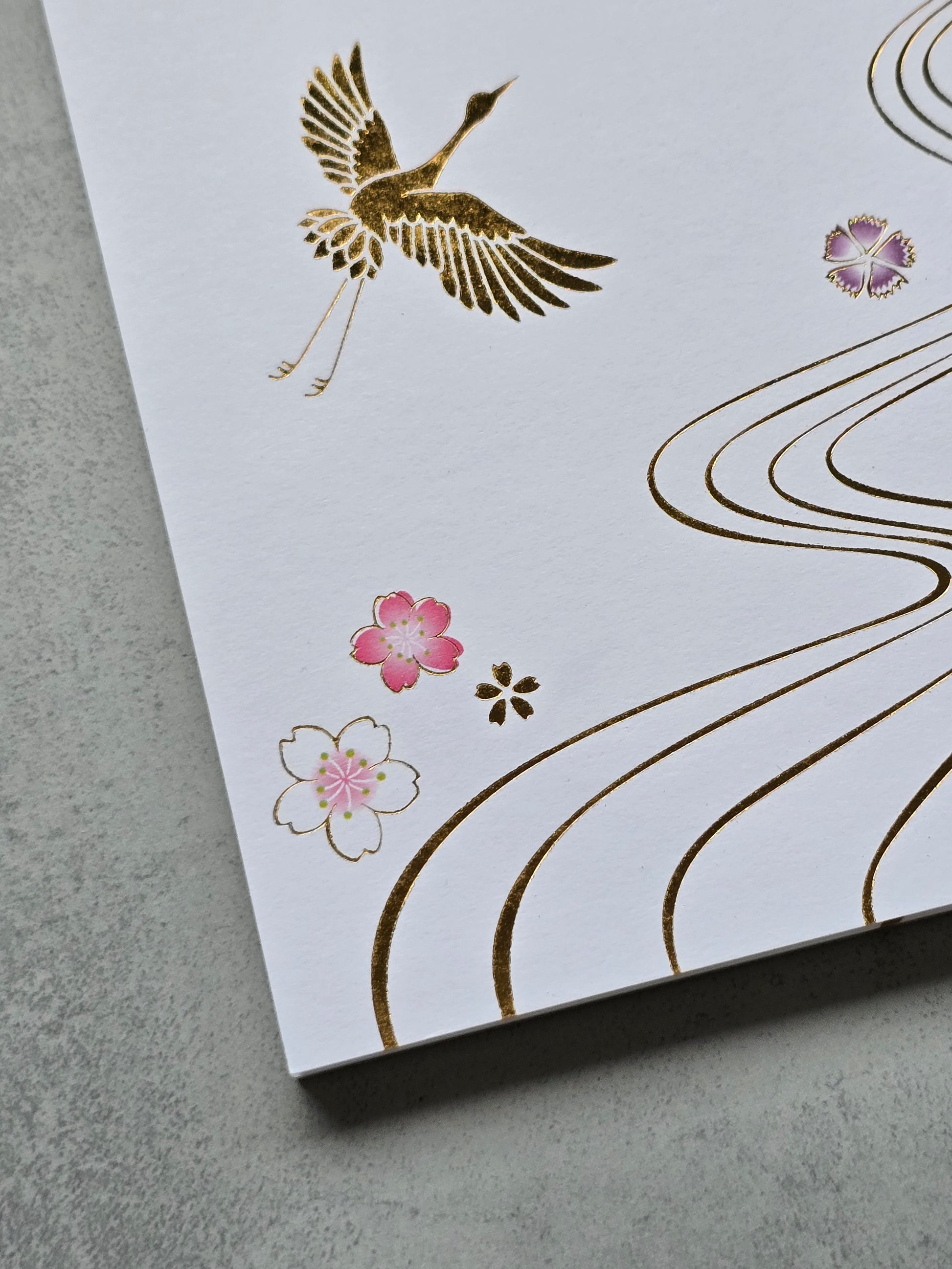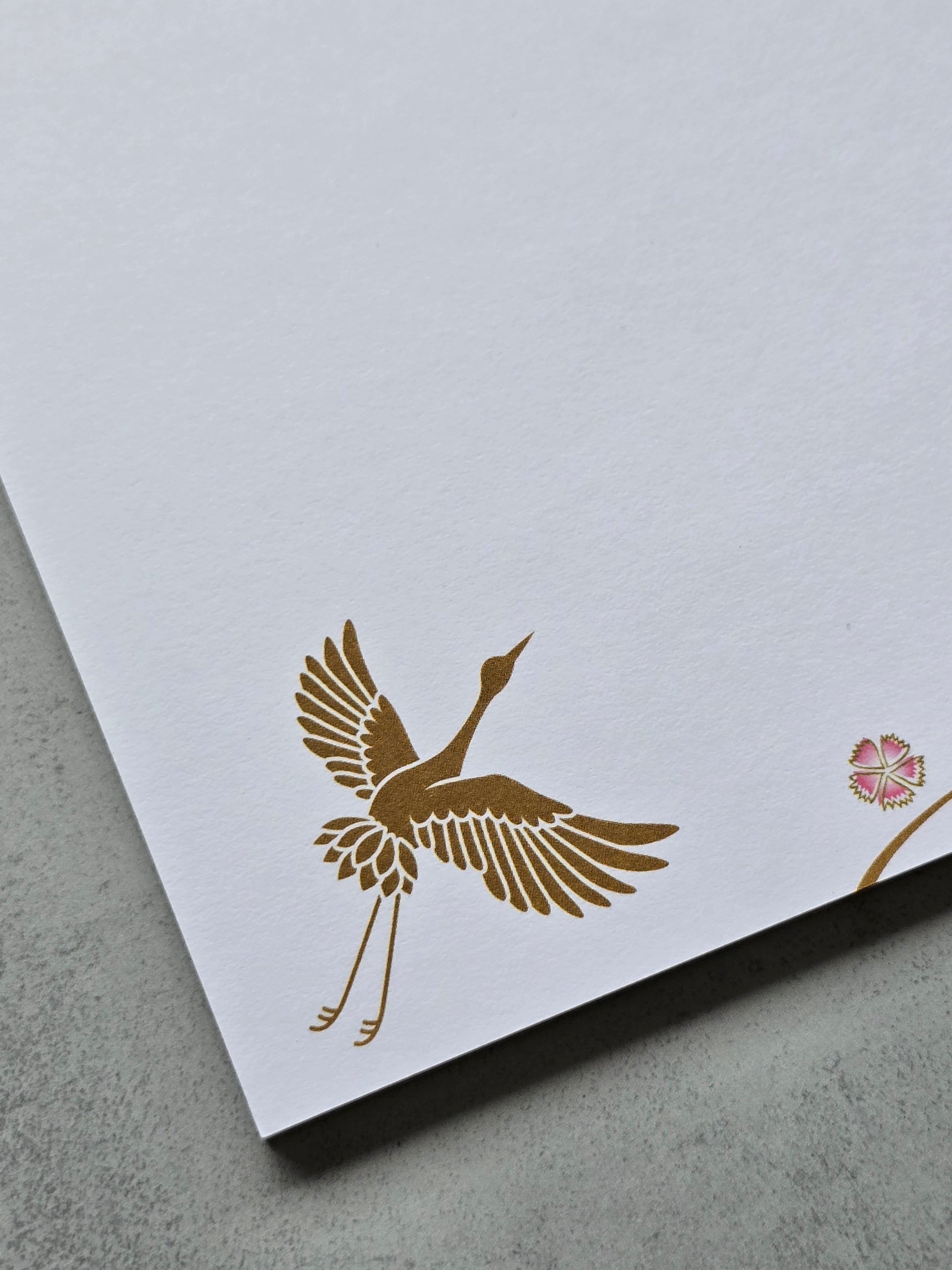 Featuring Japanese-style designs with golden cranes and running water, this beautiful notepad is great for writing letters, taking thoughtful notes, or clipping the intricate designs for your journaling and scrapbooking projects.