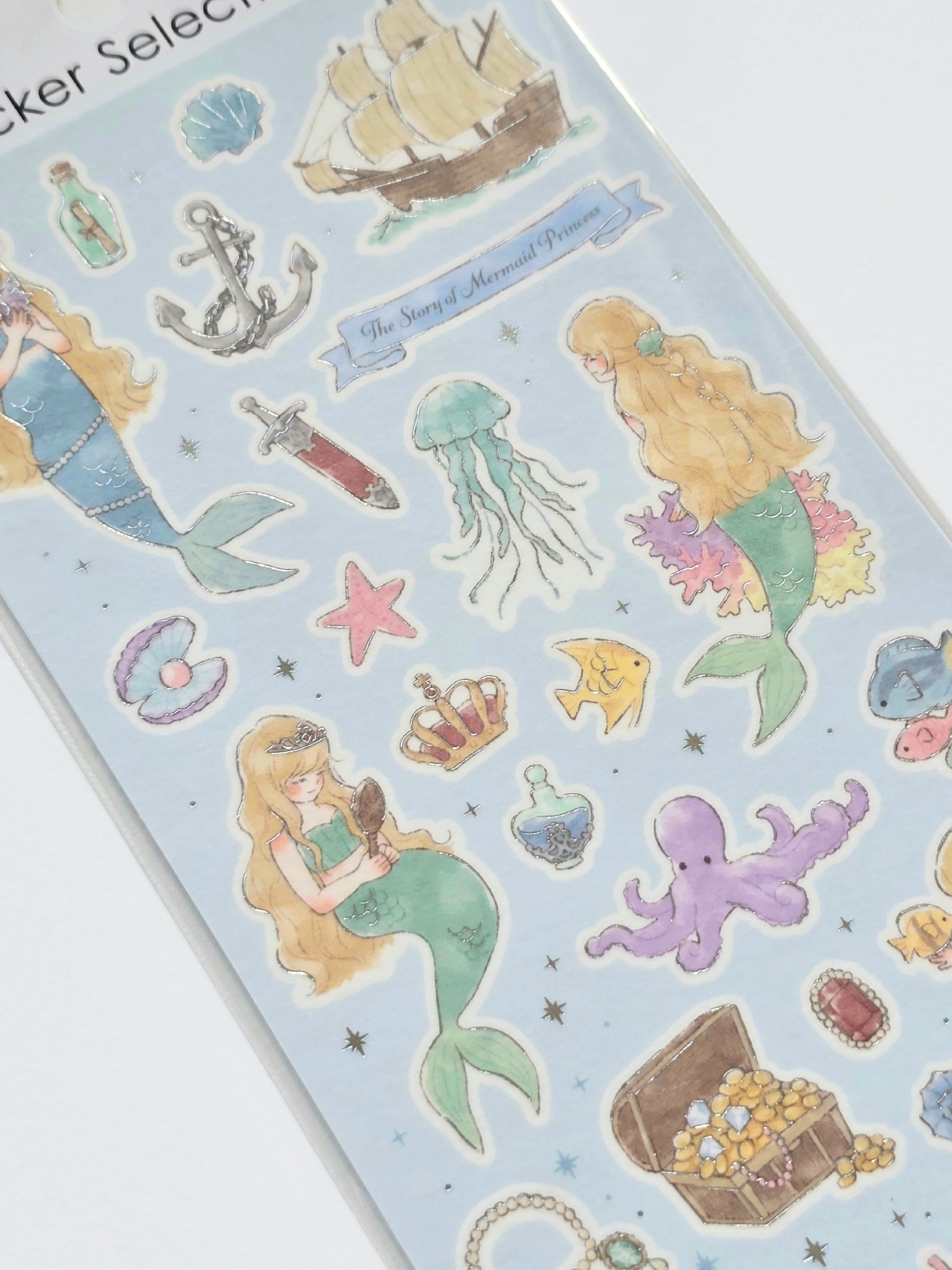 A sheet of mermaid stickers with enchanting under-the-sea designs—perfect for decorating notebooks, planners, or letters.