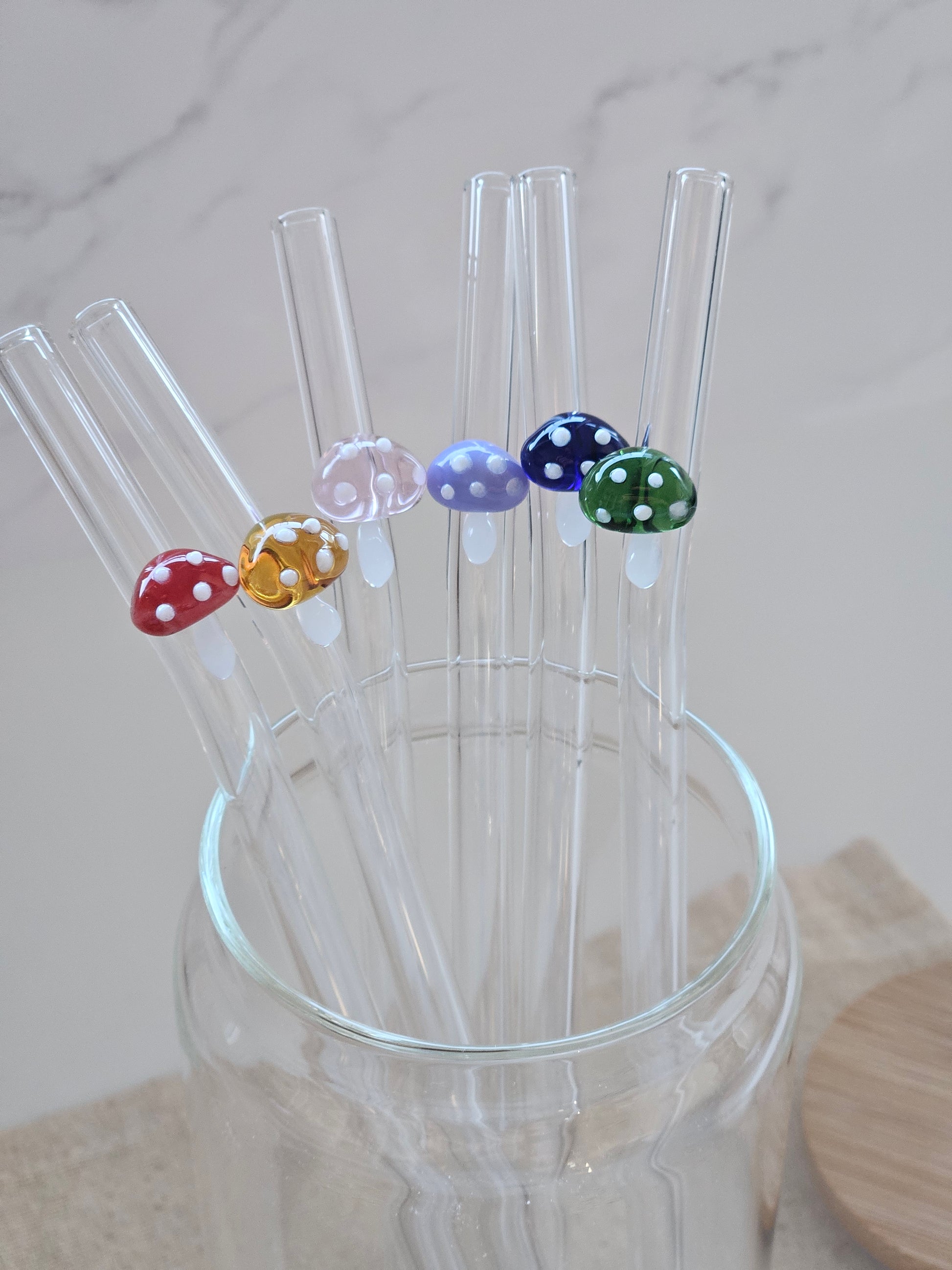 Looking to add a touch of whimsy to your cup collection? Our decorated glass straw with a cute mushroom design is the perfect way to do it!