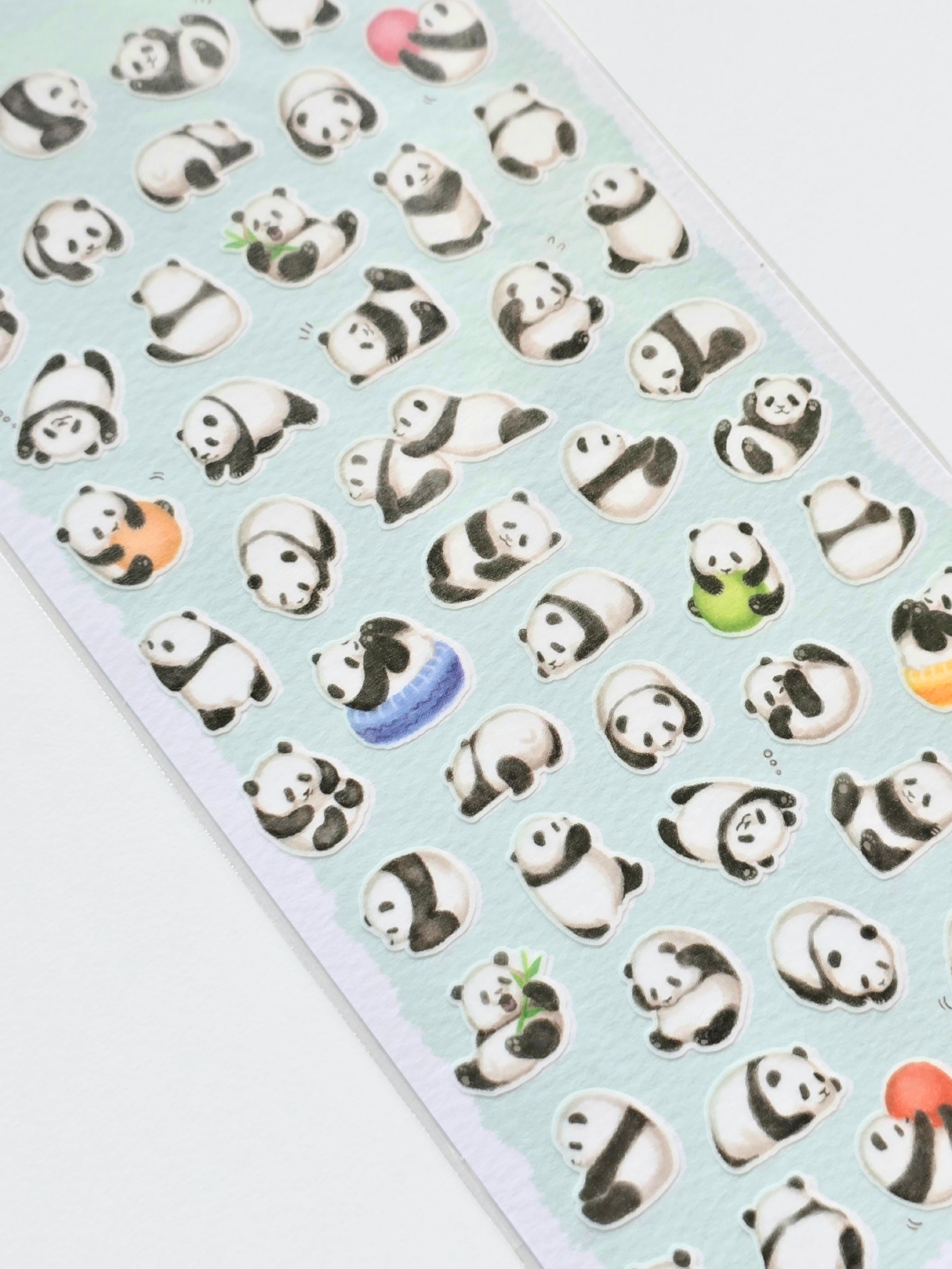 A sheet of playful panda stickers in different cute poses—great for decorating notebooks, planners, or letters.