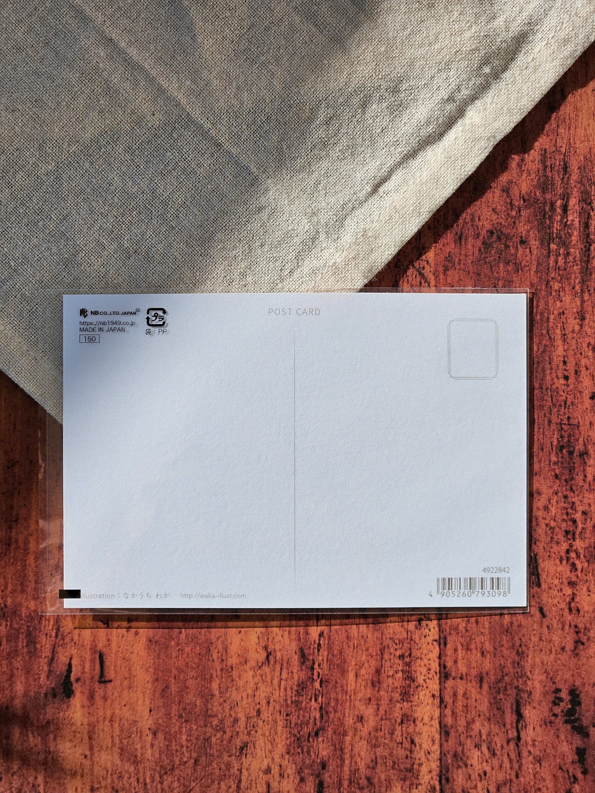 This specially curated postcard from Japan features an illustration by Waka Nakauchi, showcasing animals preparing food with vegetables and fruits harvested from an autumn forest. Perfect for sending seasonal greetings or as a decorative piece for your home. šš
