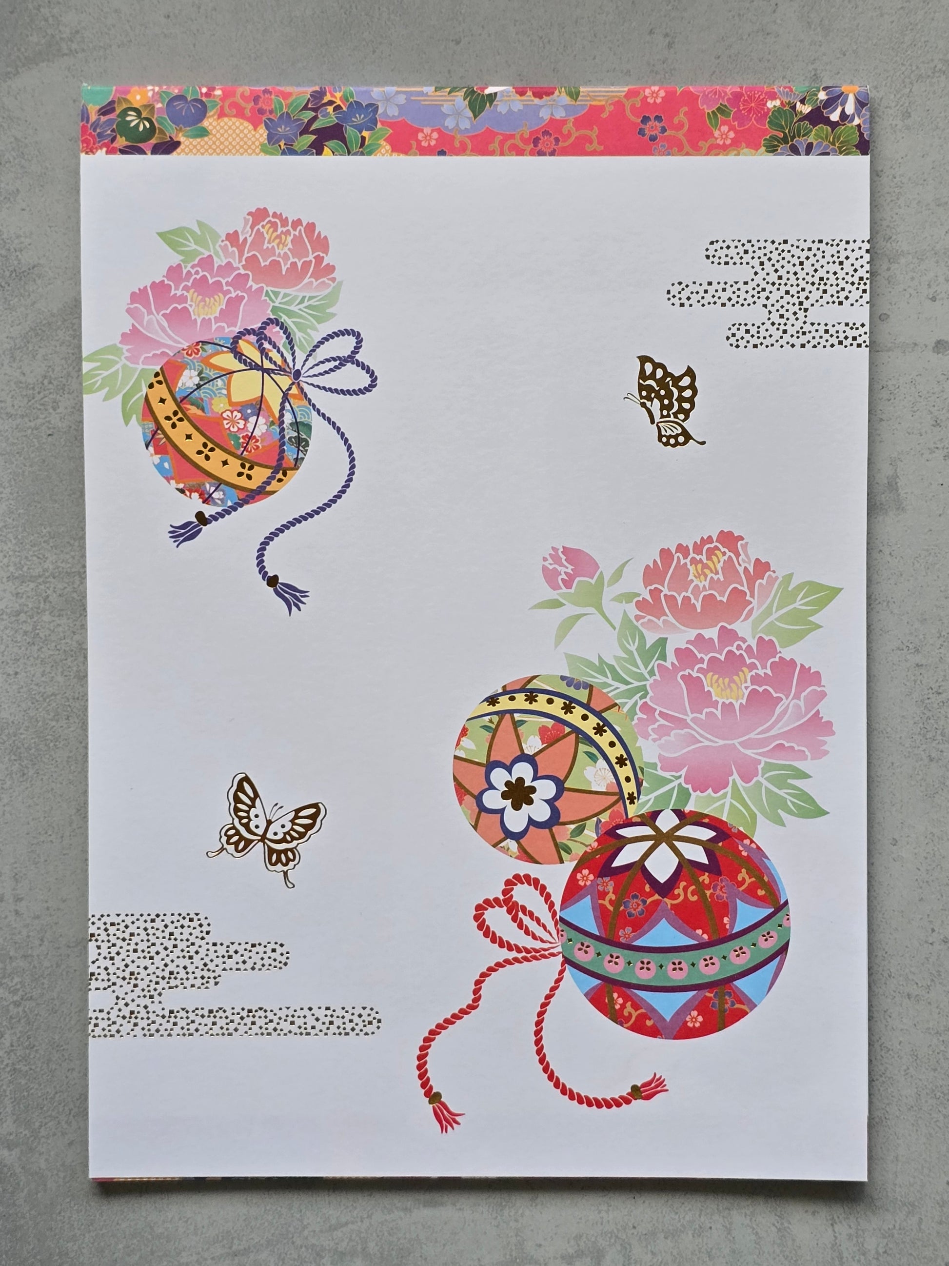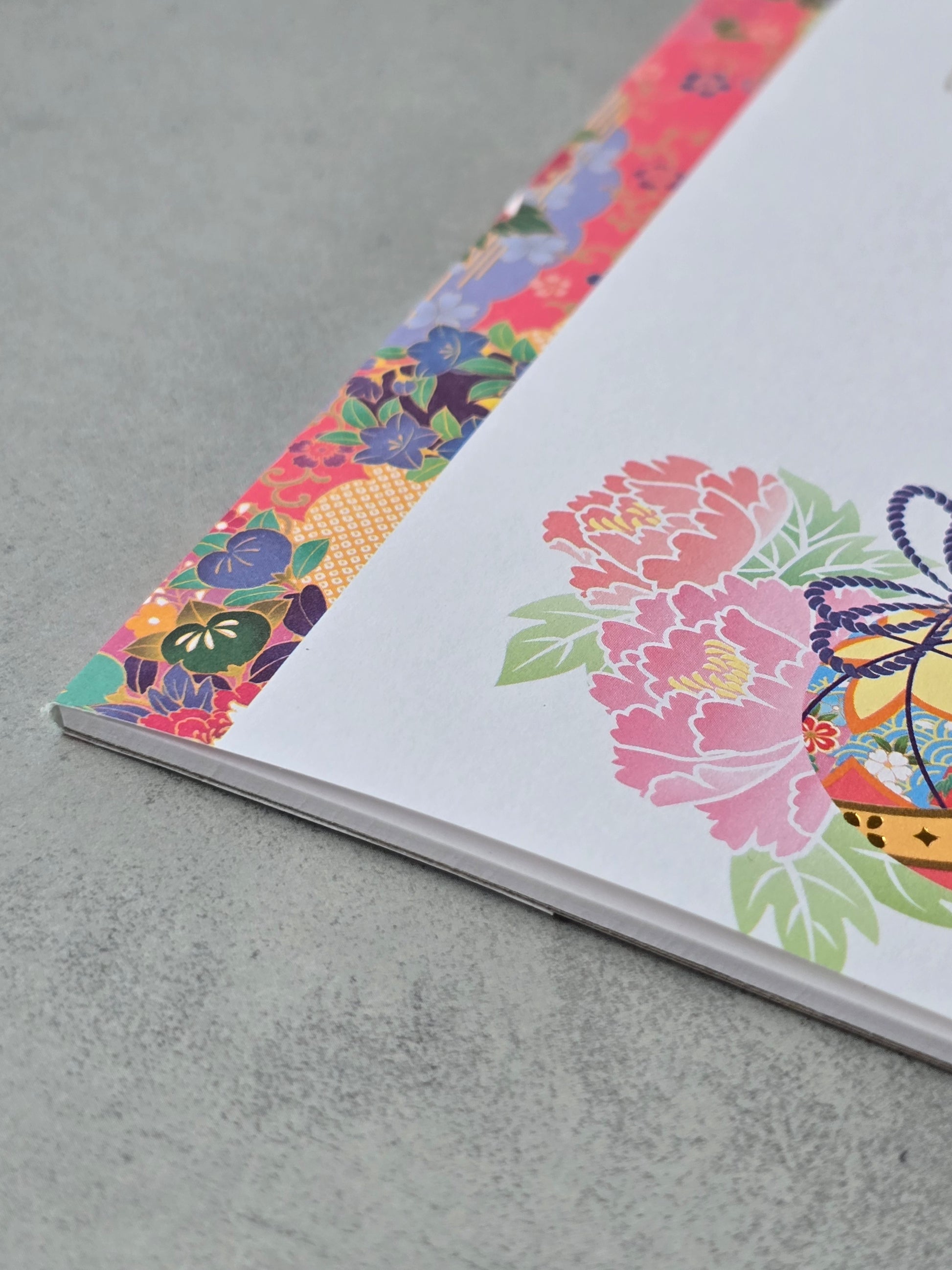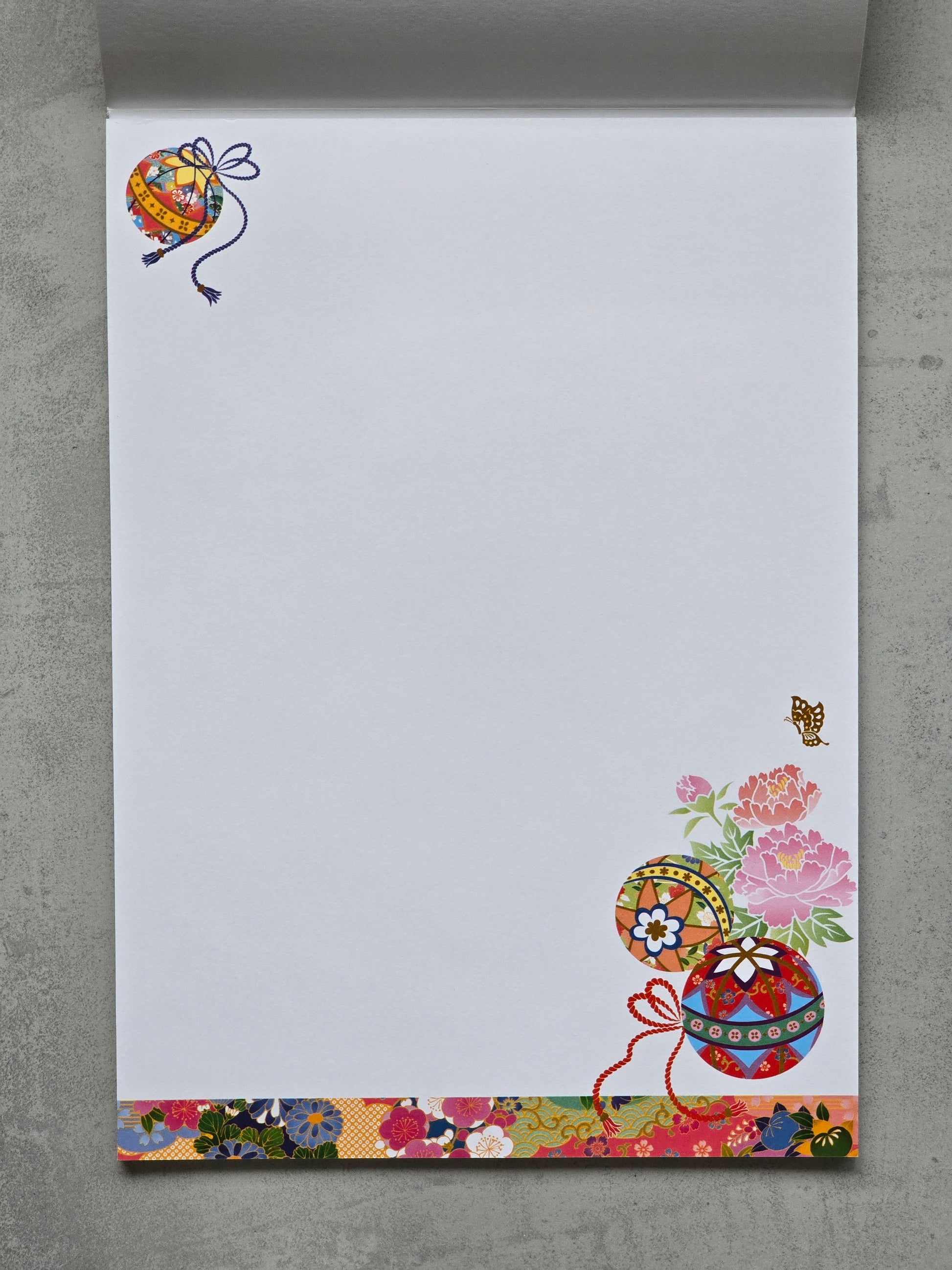 Featuring Japanese-style designs with Temari, traditional Japanese craft ball, and peony, this beautiful notepad is great for writing letters, taking thoughtful notes, or clipping the intricate designs for your journaling and scrapbooking projects.
