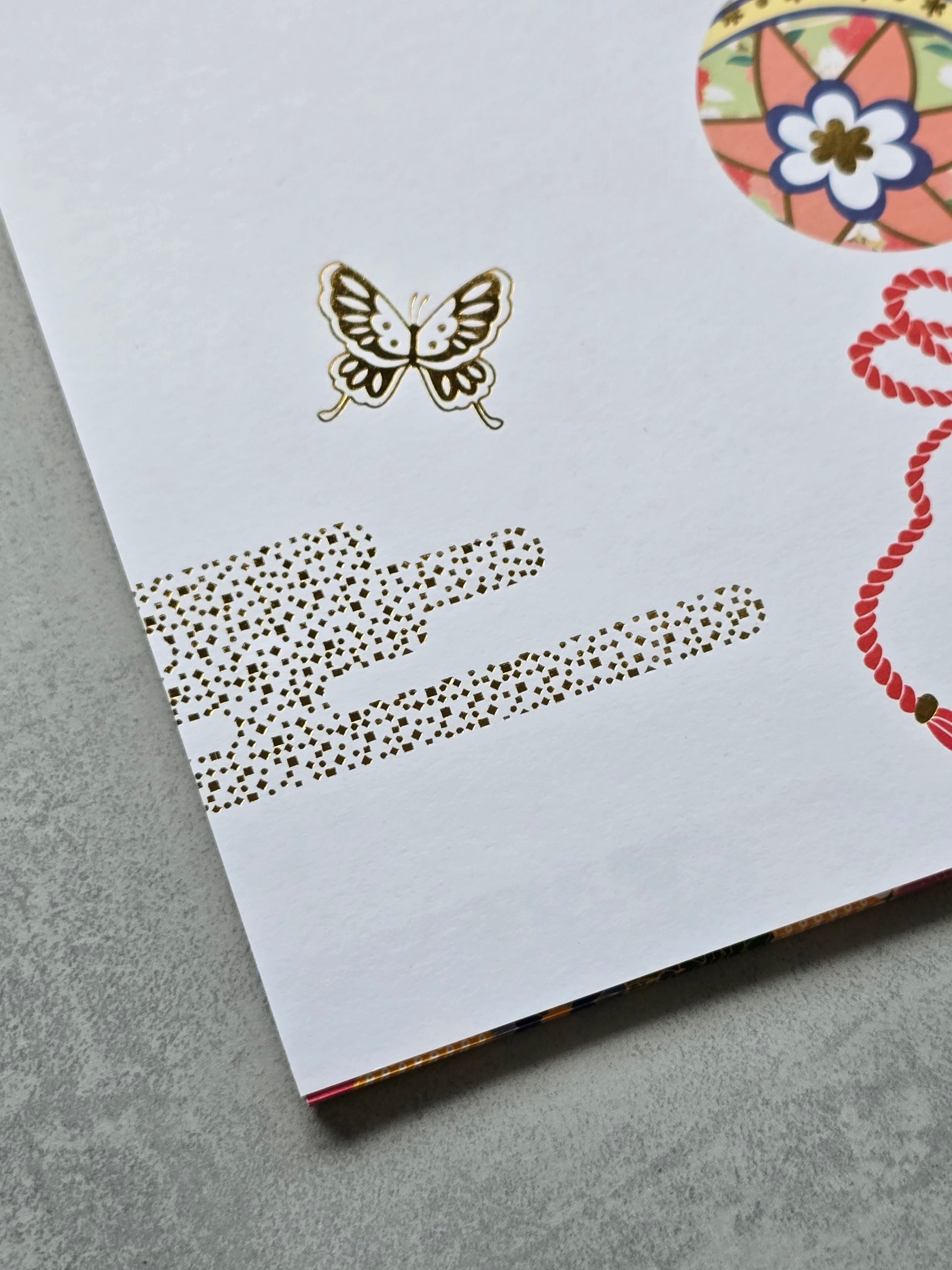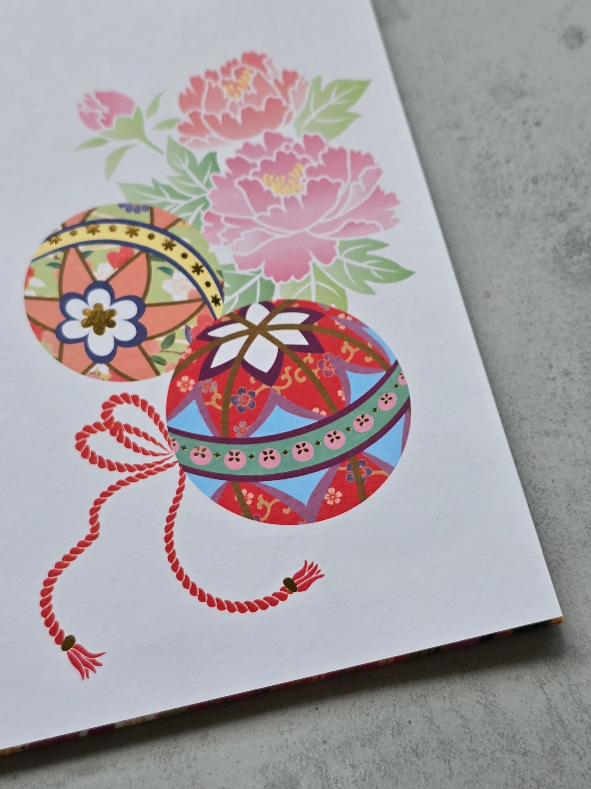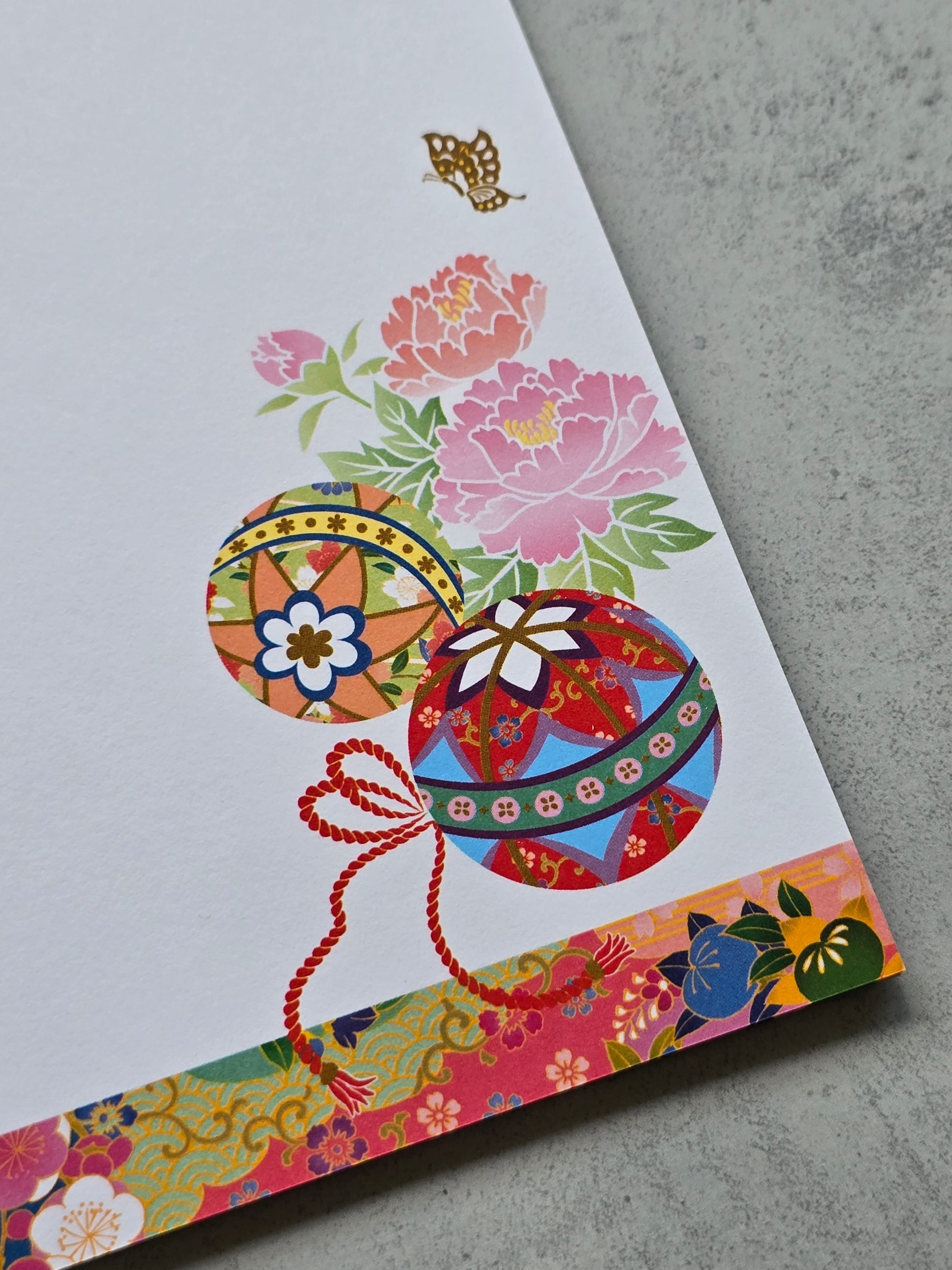 Featuring Japanese-style designs with Temari, traditional Japanese craft ball, and peony, this beautiful notepad is great for writing letters, taking thoughtful notes, or clipping the intricate designs for your journaling and scrapbooking projects.